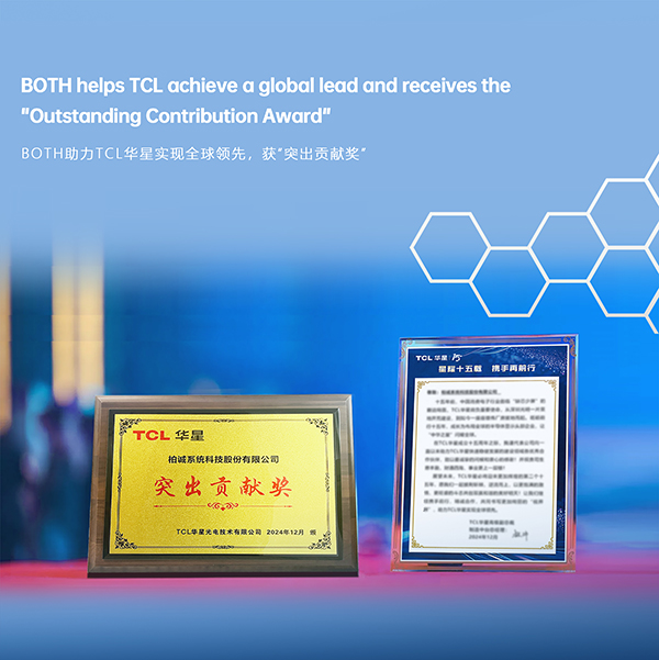 近日,在TCL华星15周年庆典之际,BOTH获授“突出贡献奖”,这一荣誉进一步巩固了BOTH作为新型显示领域可靠服务商的声誉。