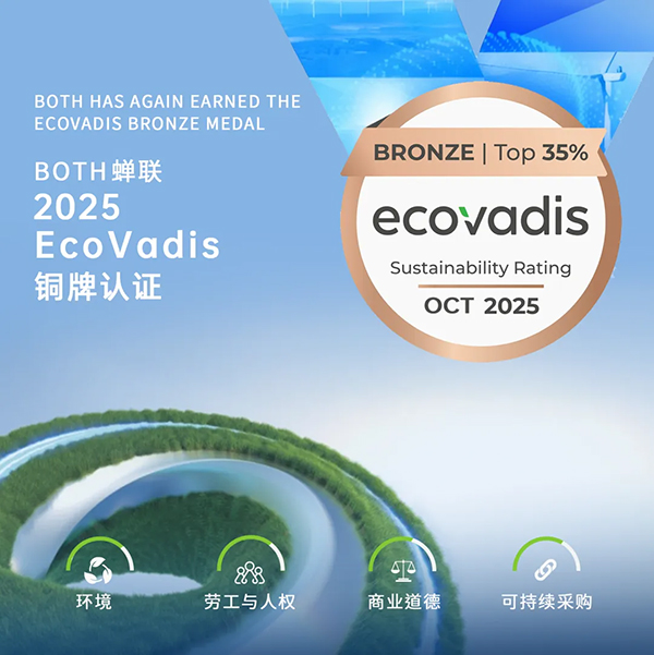 “EcoVadis的认证,既是对柏诚长期践行企业社会责任的肯定,也是对未来持续进步的激励。”未来,BOTH将继续推动ESG理念与业务深度融合,携手与客户、合作伙伴及利益相关方,共同塑造可持续发展的未来。