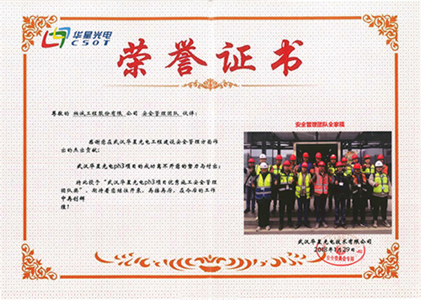 2018年1月,我公司在武汉华星光电ph3项目中喜获“优秀施工安全管理团队奖”。